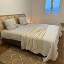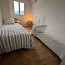 Op de verdieping zijn drie slaapkamers, alle voorzien van airconditioning, twee met een breed tweepersoons bed “lit jumeaux” van 2.00x1.80 en de derde kamer met twee eenpersoons bedden van 2.00x0.90. Als u deze tegen elkaar plaatst ontstaat ook hier een tweepersoons bed “lit jumeaux” van 2.00x1.80.