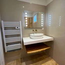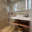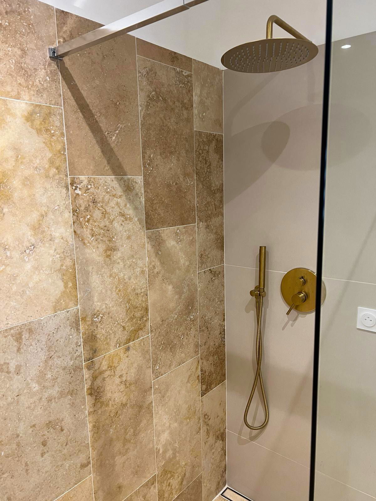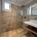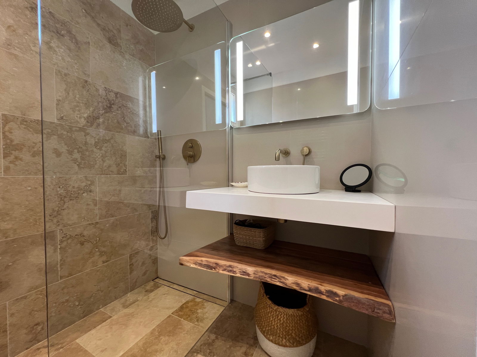 Op de begane grond is een van de badkamers beschikbaar voor u. Deze is voorzien van een grote inloopdouche met rainshower, handdouche en glazen douchewand, een wastafelmeubel, föhn, verlichte spiegel en een handdoekradiator.